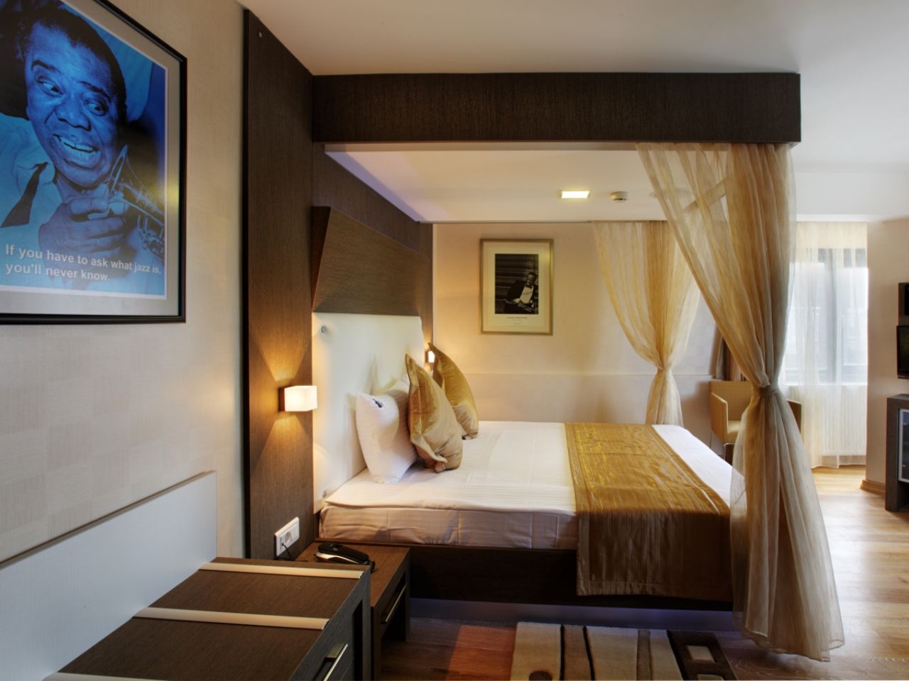 Each of the 8 luxurious rooms is named after a different world-famous jazz artist, who left a mark on jazz music history. The moment you enter a room, you will be welcomed by the memorable melodies and true spirit of the artist that room is named after. The room walls are decorated with album covers, concert posters and photographs.