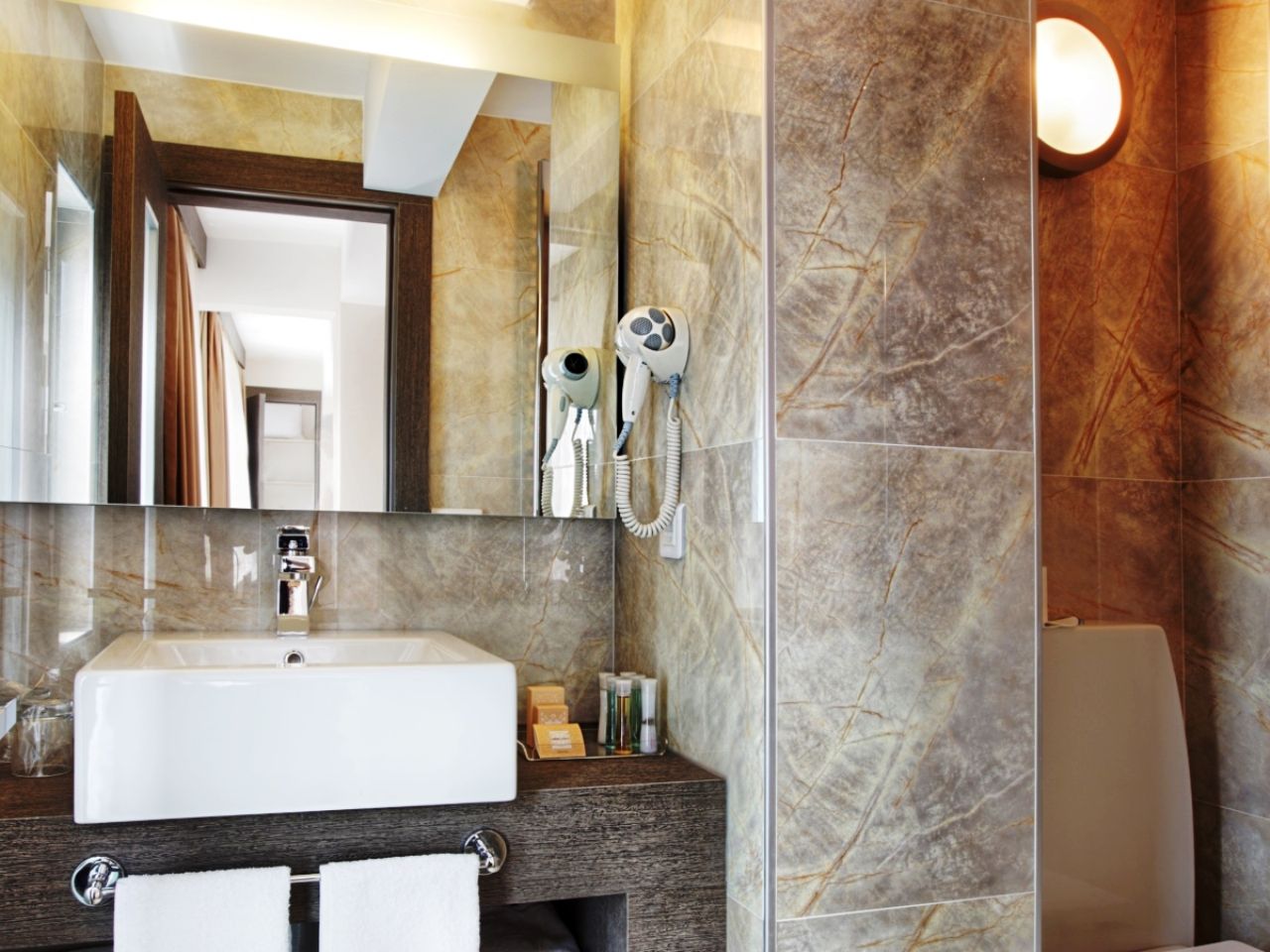 All bathrooms feature rain showers “only”; and come with hairdryers, scales, bathrobes. Please note that, each room features 1 double bed, with no possibility for an additional bed or a baby crib.